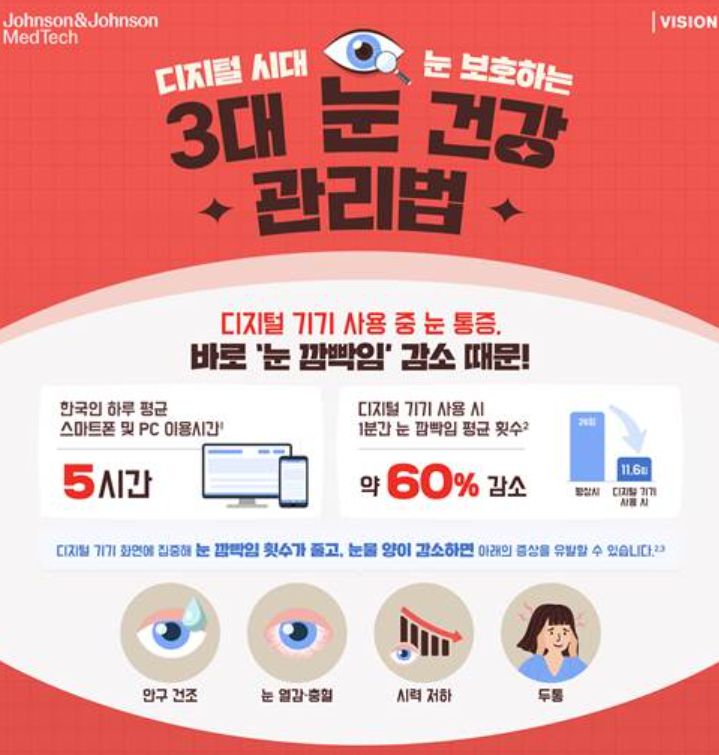 '정상적인 눈 깜빡임 횟수는 1분 당 평균 26회인 반면, 디지털 기기 이용 중에는 평균 11.6회로 약 60% 감소'(기사) 본문