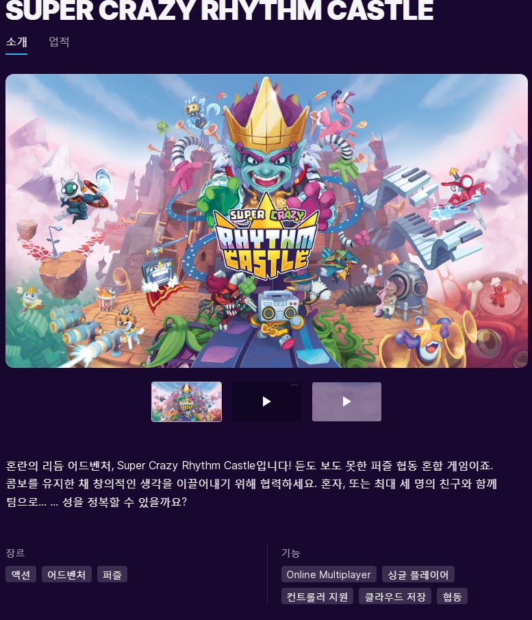(에픽게임즈 무료게임) SUPER CRAZY RHYTHM CASTLE 본문