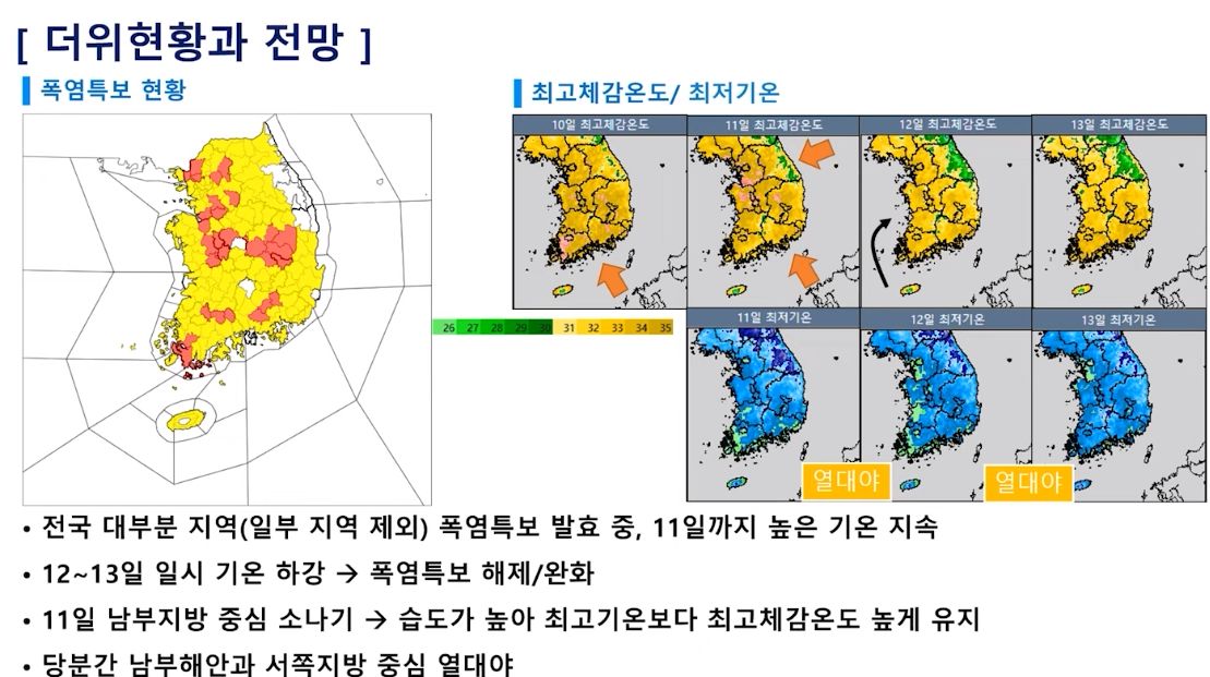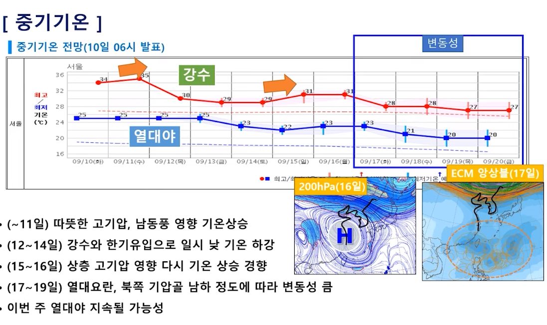 이런 날씨는 처음! 서울 9월 첫 폭염경보! 열대야까지! 12일 기온 하강 (2024년 9월 10일 기상청 예보브리핑)