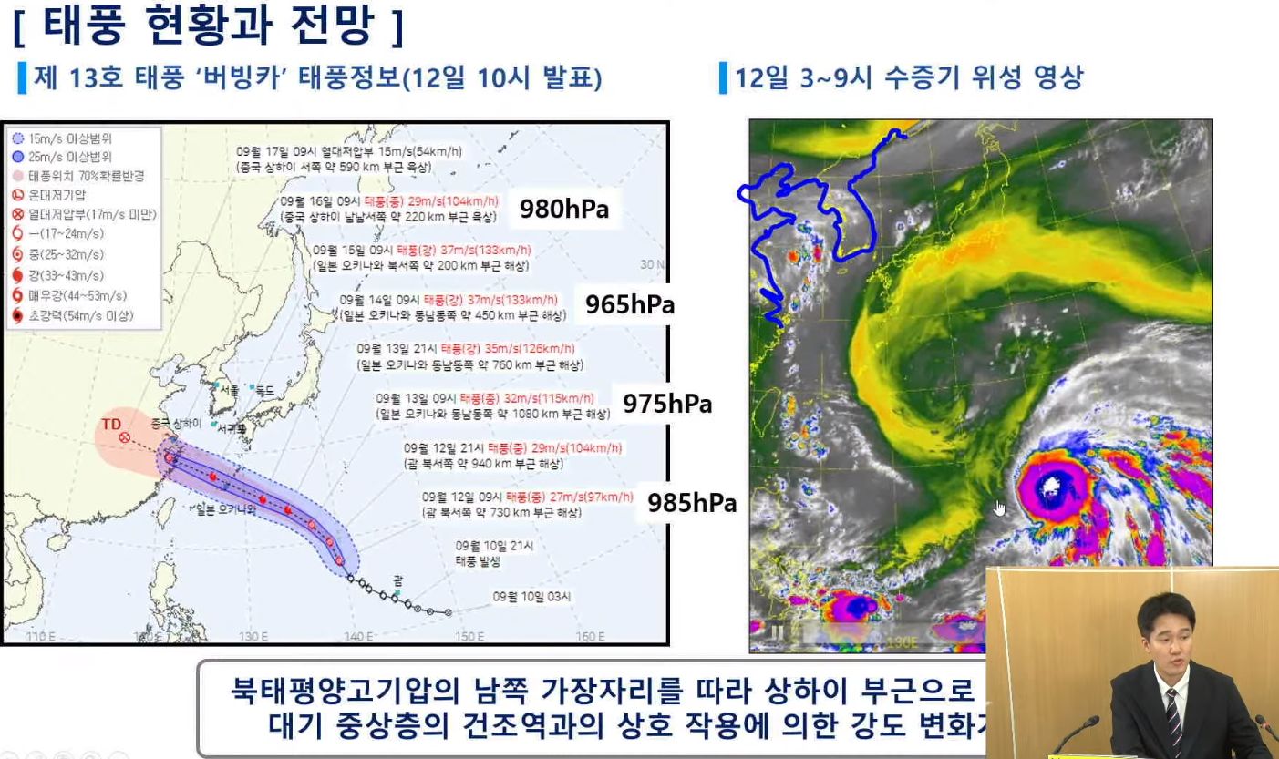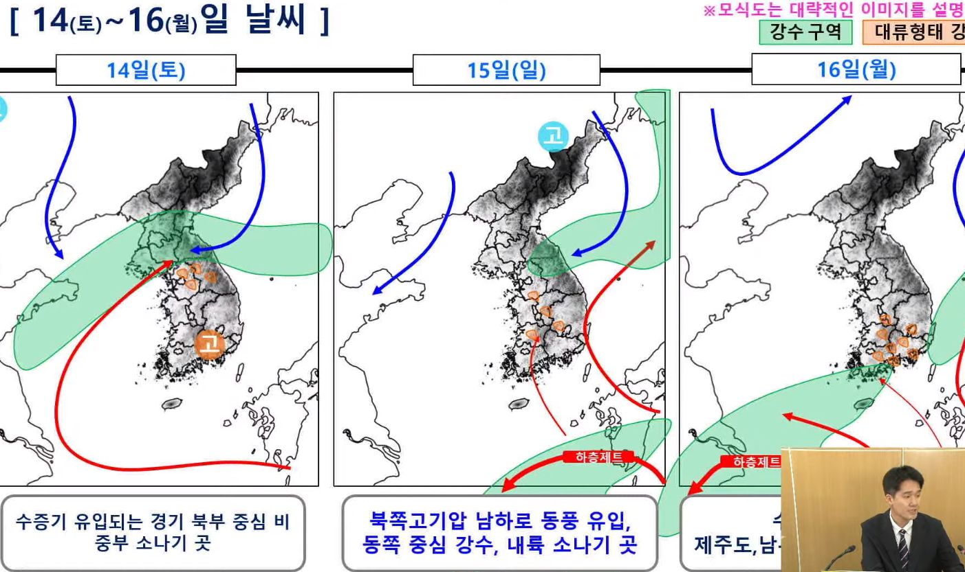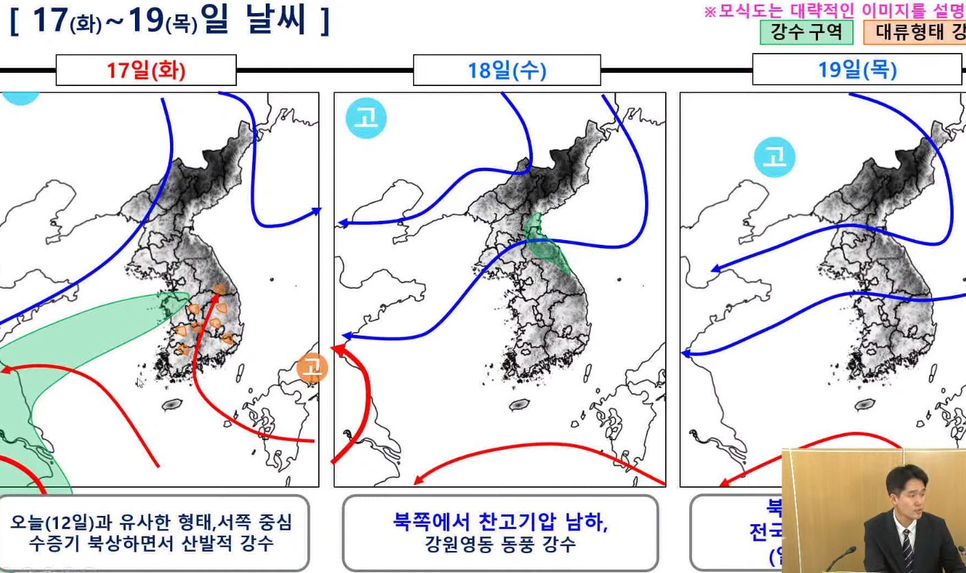 10일에 나온 것과 12일에 나온 것입니다. 출처는 유튜브에 올라온 기상청 옙TV입니다.