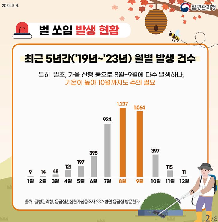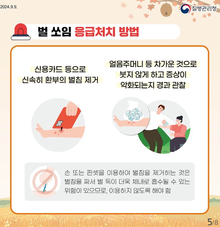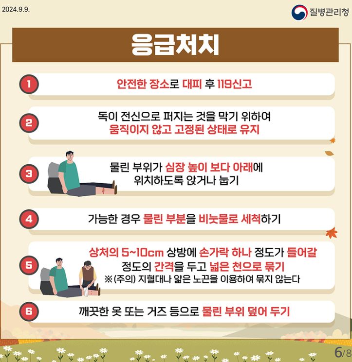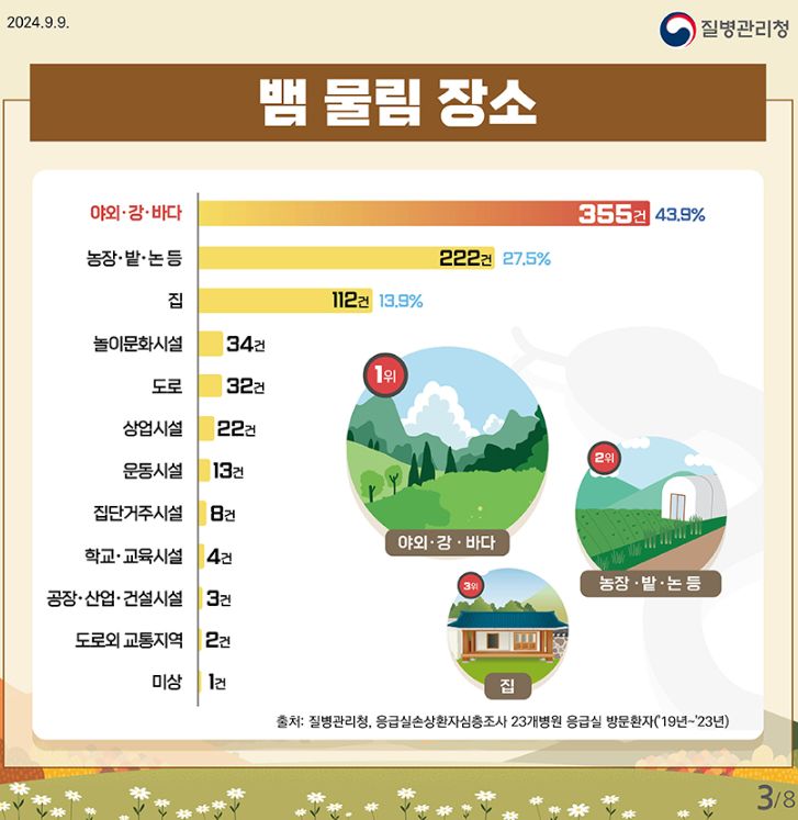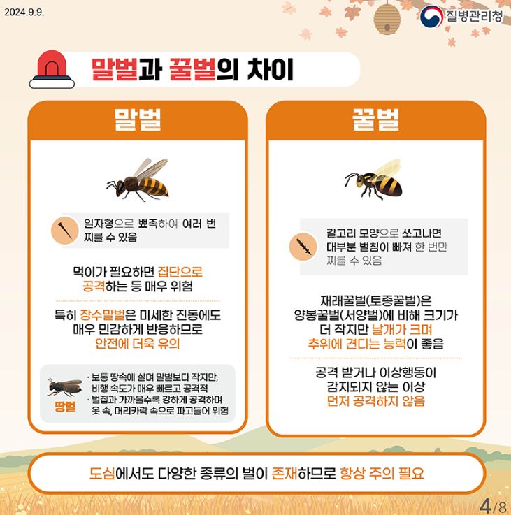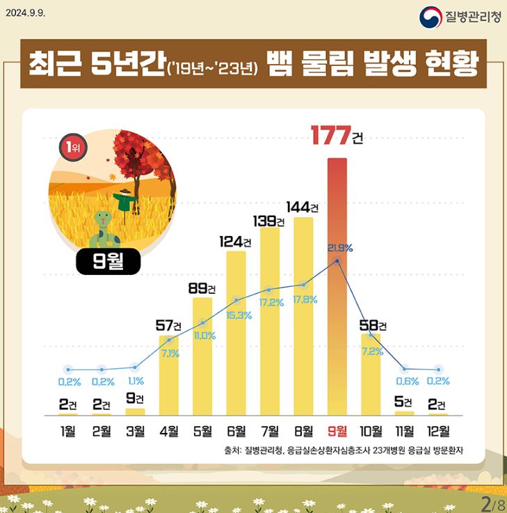 벌 쏘임 예방법, 가을철 뱀 물림 주의!, 가을철 안전 주의사항(예초기) (질병관리청 카드뉴스) 본문