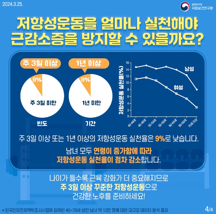 근육이 줄어들지 않게 주 3회, 1년 이상, 꾸준히 근력운동 실천해요! 2024-03-28