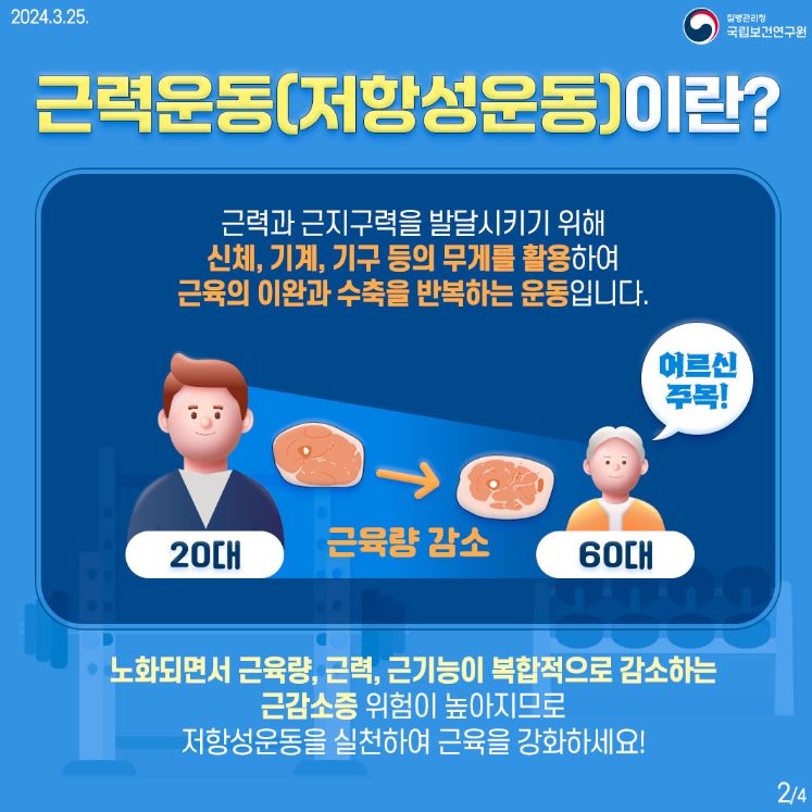 근손실방지를 위한 근력운동, 저항성운동을 하라는 질병관리청 카드뉴스 (2024) 본문