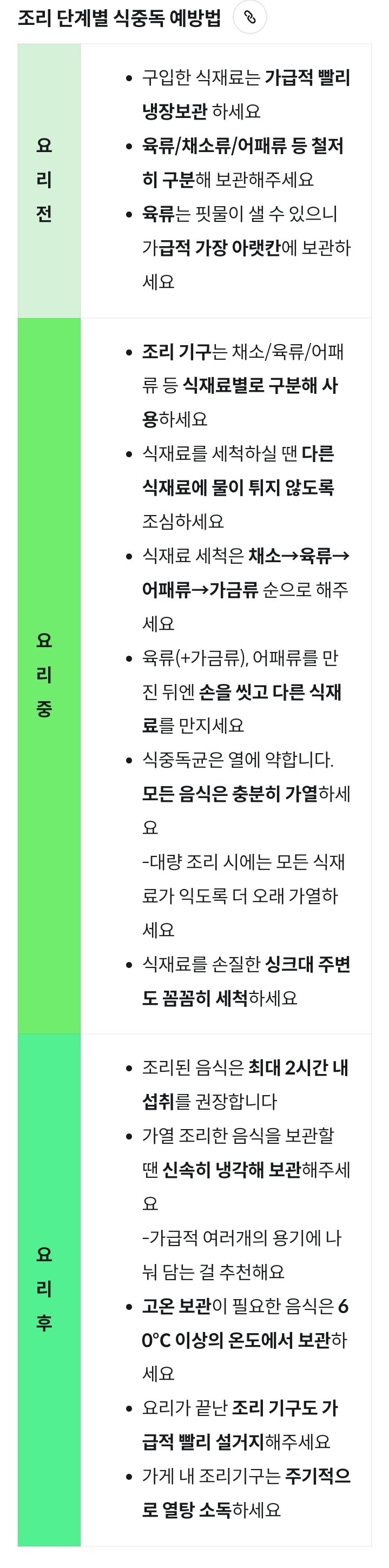 채소 → 육류 → 생선 → 가금류(닭) 순서