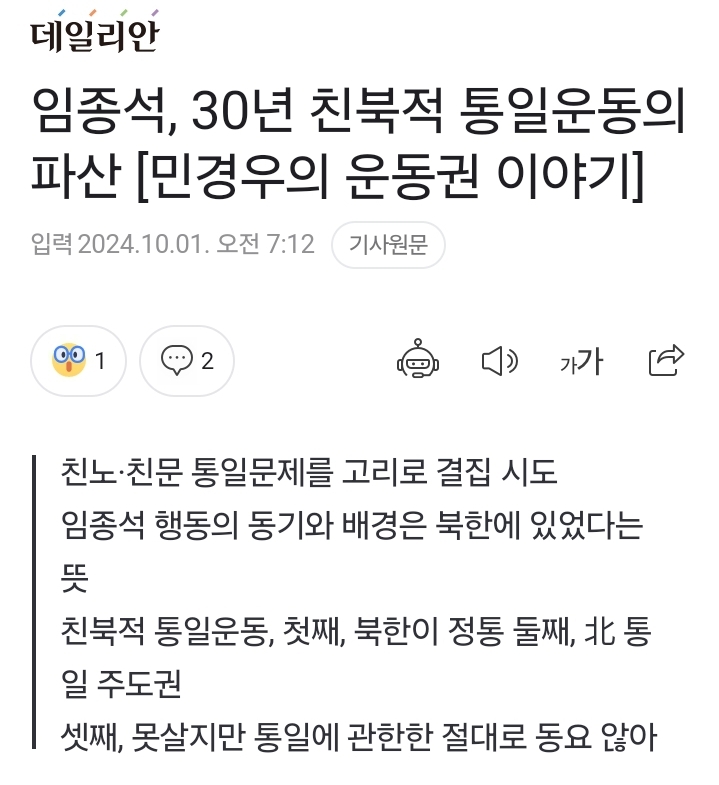 북한 지령이 바뀌었나보군요, 임종석씨? 본문
