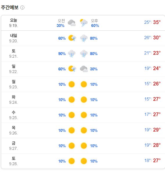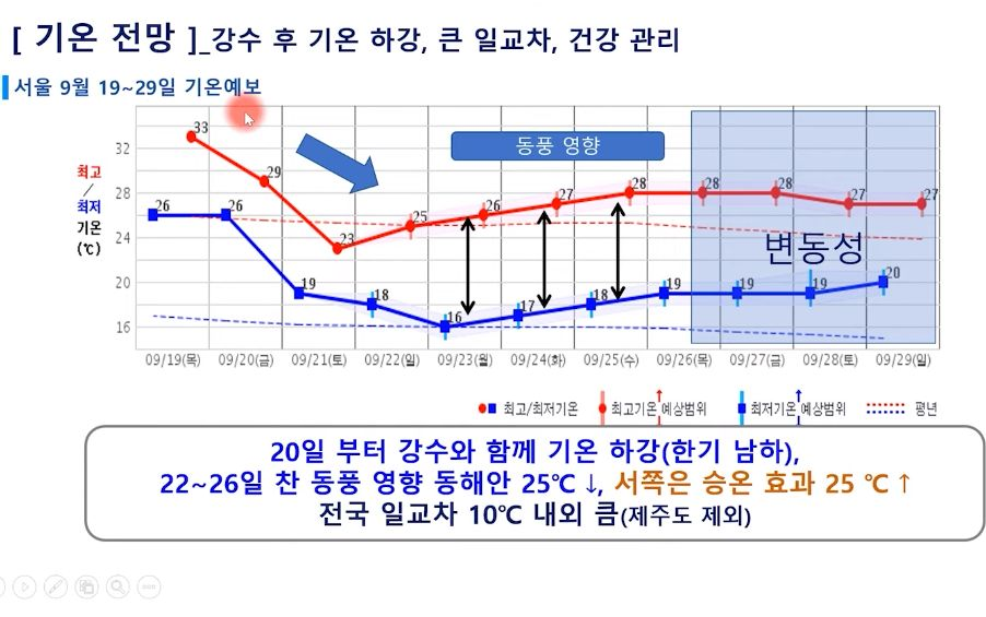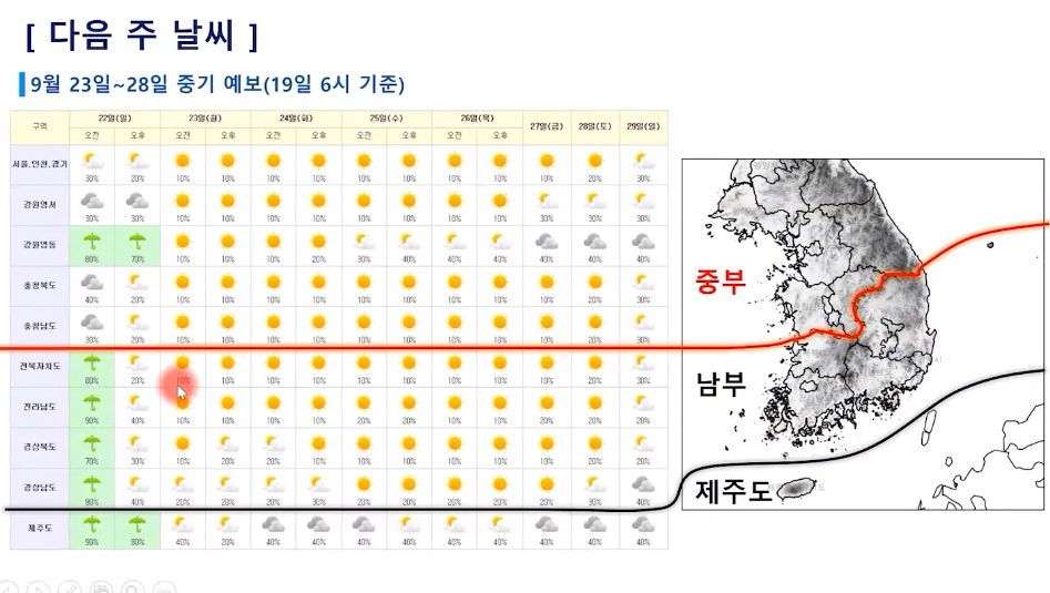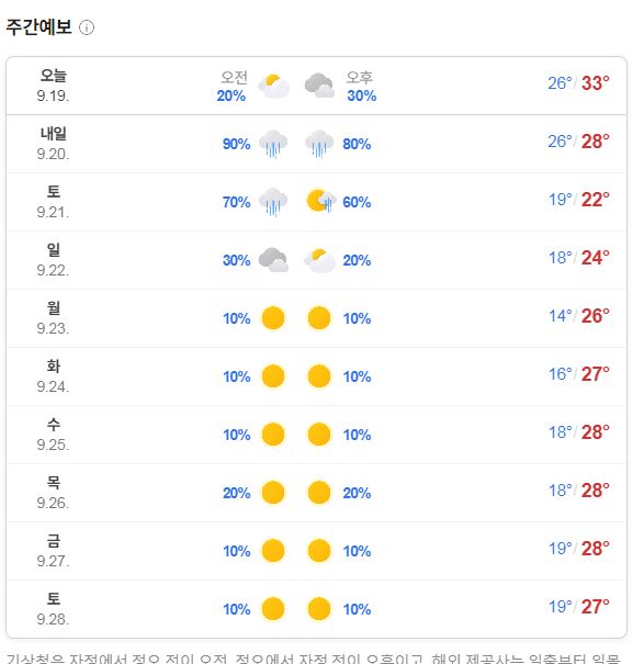 2024.9.20.금~ 9.29.일. 일기예보: 비내린 다음 보통 가을로 가는 날씨 본문