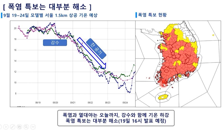 폭염 드디어 끝난다! 금요일부터 전국 많은 비! 태풍은 상해로... (2024년 9월 19일 기상청 예보브리핑)