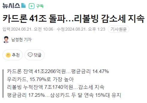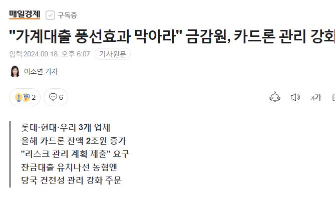 다른 뉴스에서 리볼빙 잔액 감소라는 언급도 했는데, 이건
