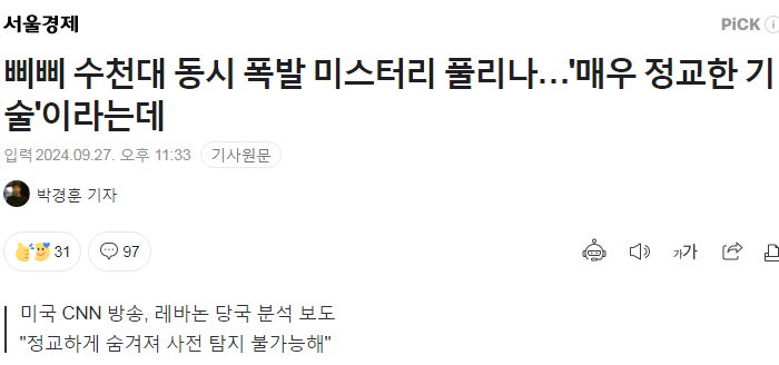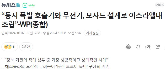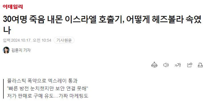 지난 9월, 이스라엘, 무선호출기(삐삐) 폭탄 기사 몇 가지 본문