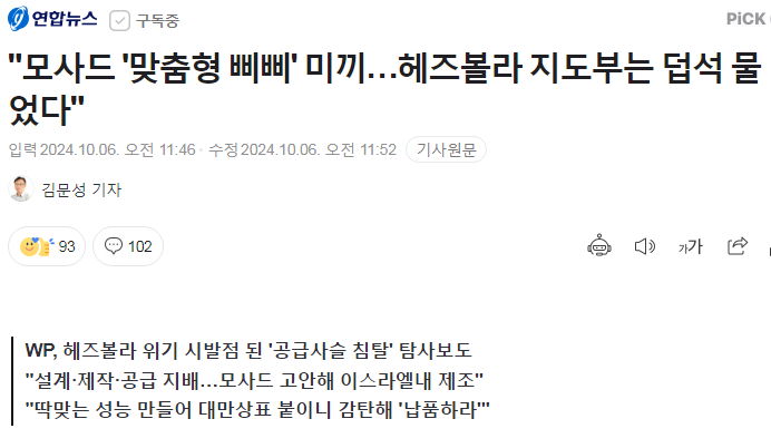 "모사드 '맞춤형 삐삐' 미끼…헤즈볼라 지도부는 덥석 물었다"