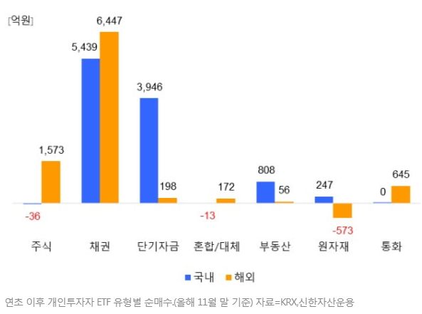 2023년말, 기사. 연초이후 개인투자자 자산별 순매수 추이