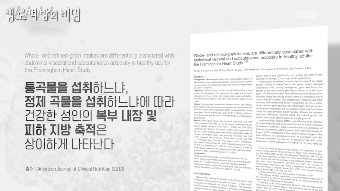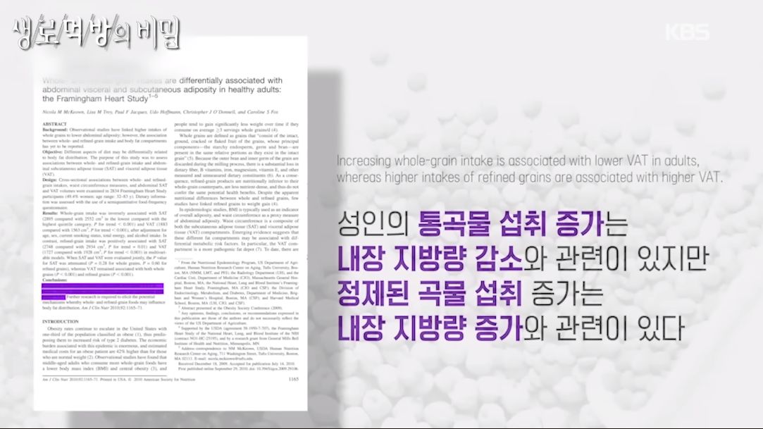 통곡물은 내장지방감소, 정제곡물은 내장지방증가