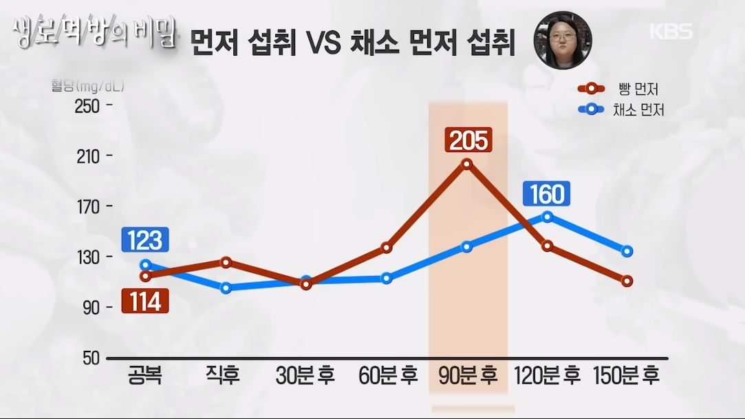 채소 .. 빵 순서 vs 빵 .. 채소 순서 => 채소먼저 먹으면 좋다.