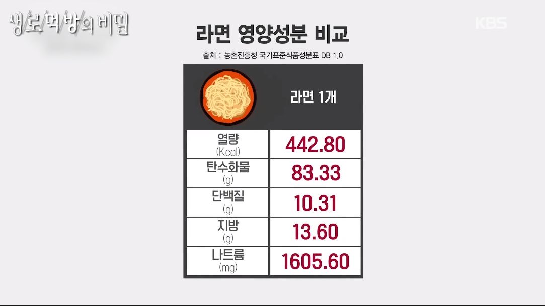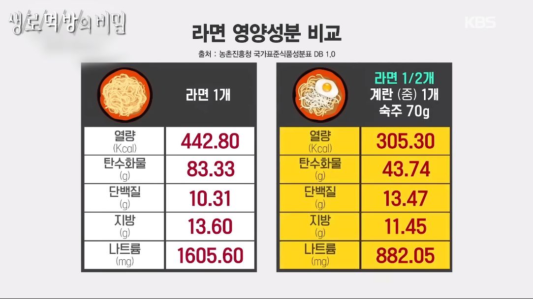 라면을 먹을 때, 라면사리와 스프를 줄이고 채소와 고기를 넣어 칼로리를 마추면