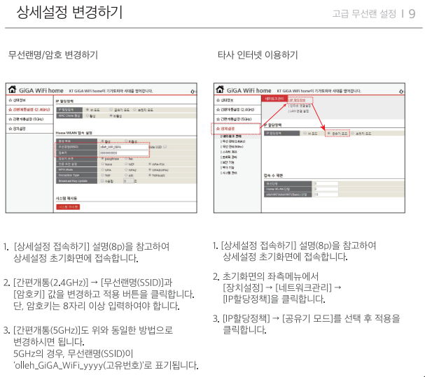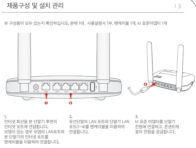 kt의 공유기와 UTP 등 기계 설명서는 여기: