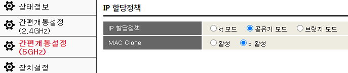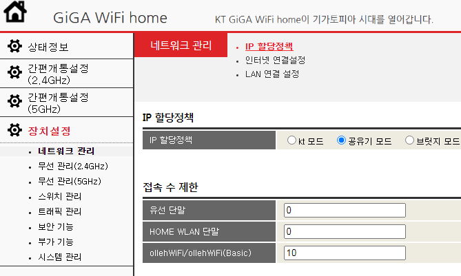 kt 유무선 공유기의 kt 모드, 공유기 모드, 브릿지 모드에 대해 알아 본다. kt 유무선 공유기에 IP 할당 ...