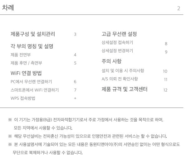 그리고.. 동원 DW02-412H 모델 설명서 캡처한 것입니다.