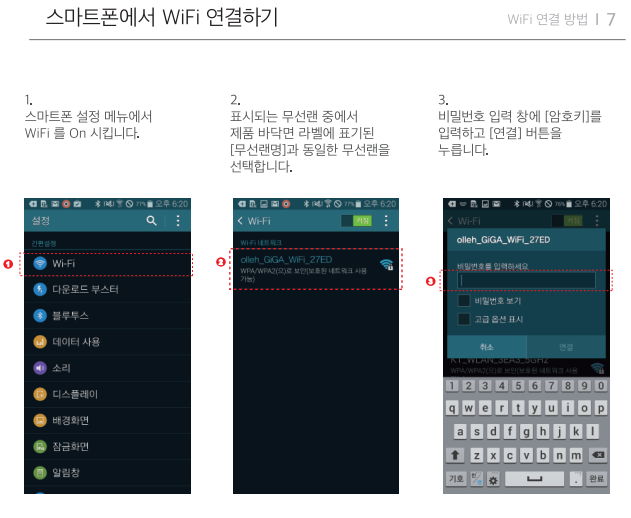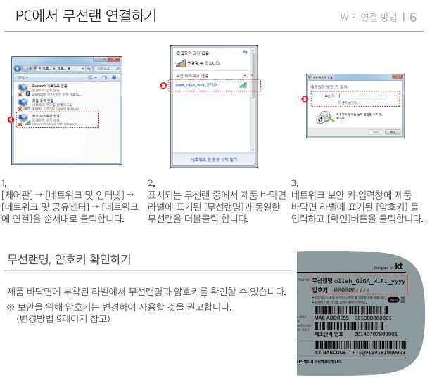 처음 무선랜 로그인 (제품바닥 키 사용)
