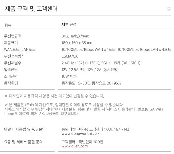 kt GiGA WiFi home 사용설명서 동원 DW02-412H 본문