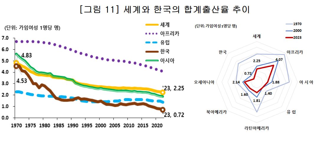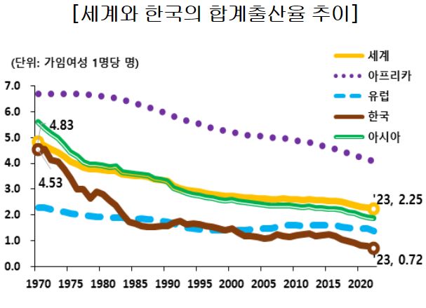 "한국은 50년 지나도 세계 꼴찌"…또 '폭탄 전망' 나왔다, "2072년 세계 중위 연령 '불혹'…한국은 '환갑' 넘어" 약 50년 지나도 韓 합계출산율 1.08명…세계 최저 전망