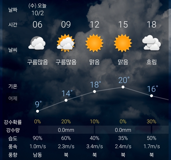 날씨앱 바깥기온 약 9도