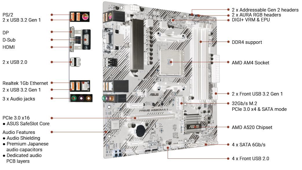 PRIME A520M-A II - 사양|메인보드|ASUS 한국