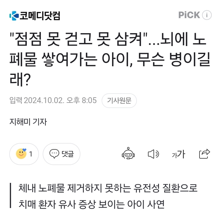 "점점 못 걷고 못 삼켜"...뇌에 노폐물 쌓여가는 아이, 무슨 병이길래?