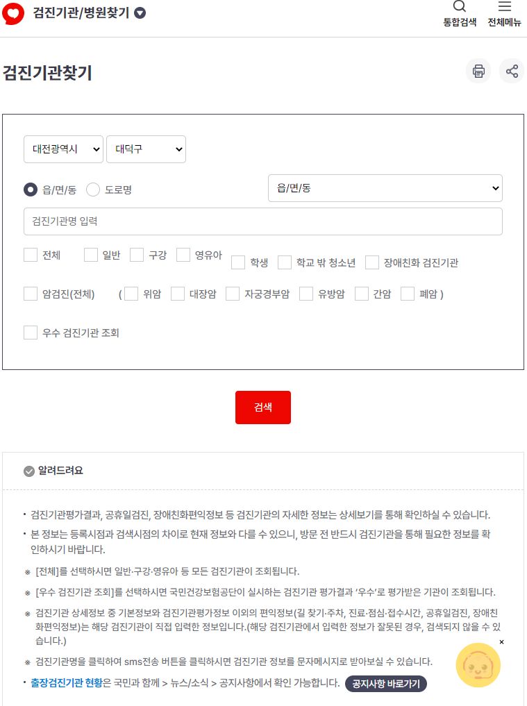 검진기관찾기 (질병관리청)