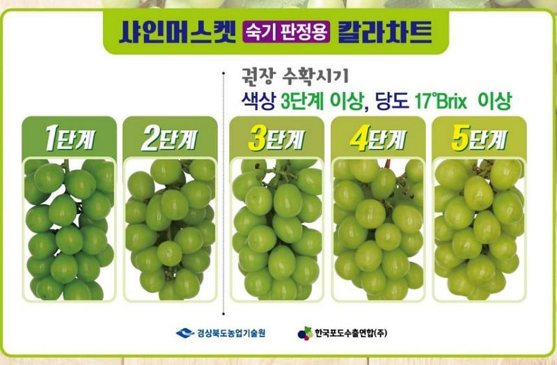 ㅡ 출시초기 국내시장에서 고가전략을 밀 때는 17~20브릭스까지도 올려 가장 좋은 상품을 출하했다지만, 요즘은 재배면적이 급증해 가격이 떨어지면서 값을 잘 받으려고 조기출하경쟁 중. 그래서 13브릭스정도의 덜 된 포도도 유통 중. 그 결과 전보다 껍질이 질기나, 덜 달다는 소비자 불만도.