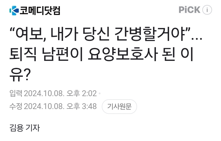 “여보, 내가 당신 간병할거야”... 퇴직 남편이 요양보호사 된 이유?