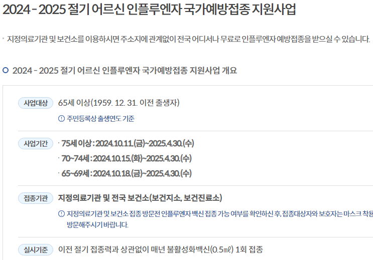 2024 - 2025 절기 어르신 인플루엔자 국가예방접종 지원사업