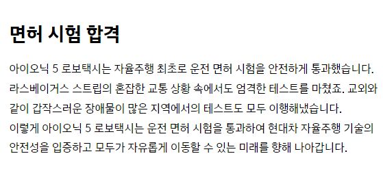 다만 아직 택시기사가 탄다는 점이, 미국과 중국의 "무인"택시를 아직 못 따라가는 점입니다.