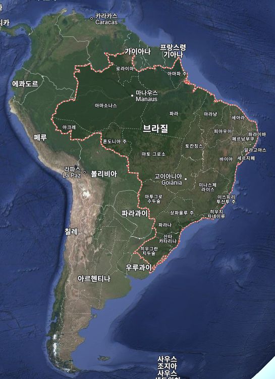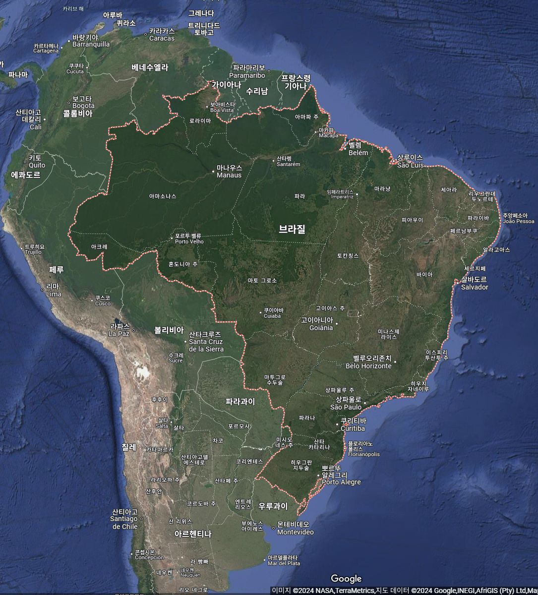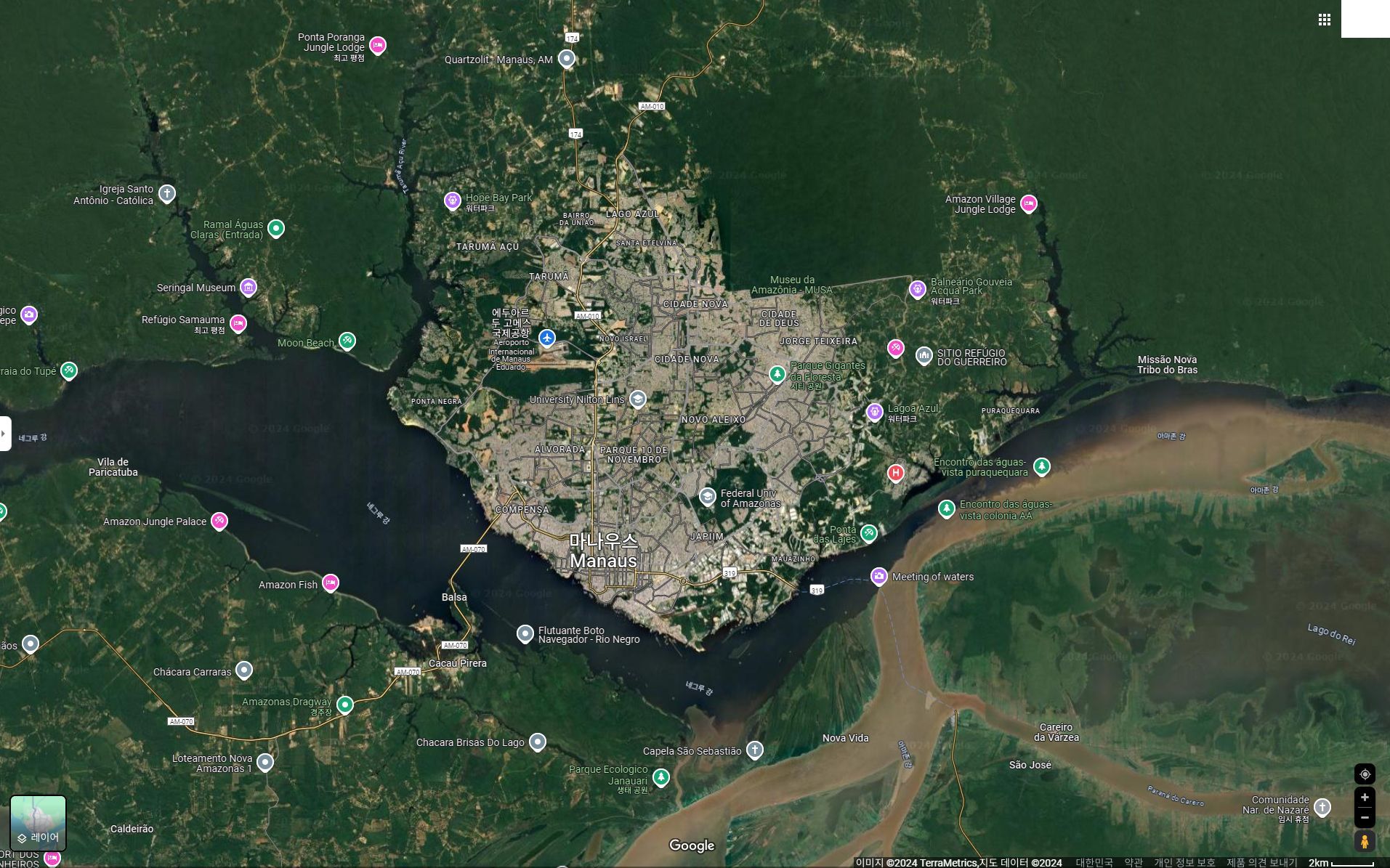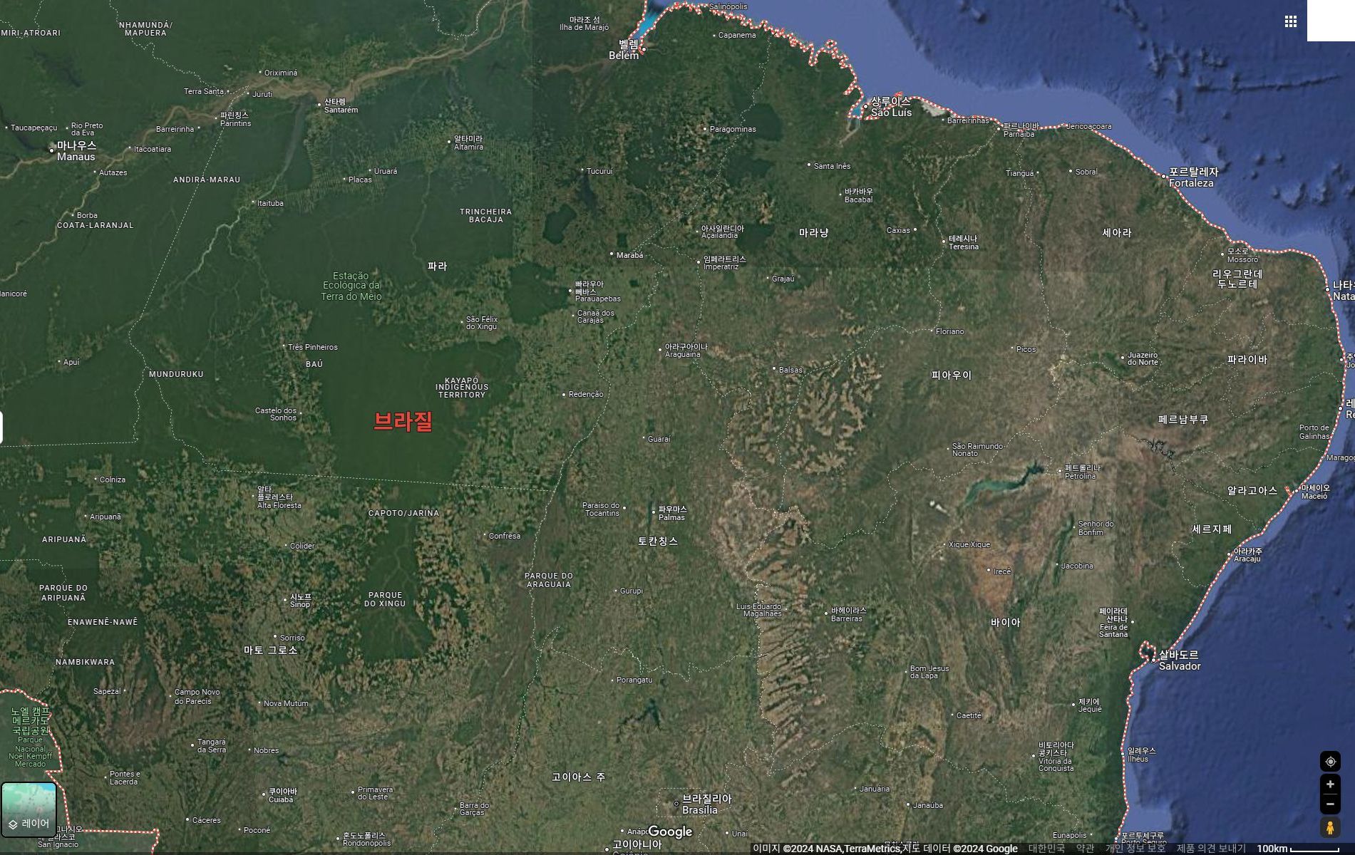 브라질의 북서쪽, 마나우스쪽을 보죠.