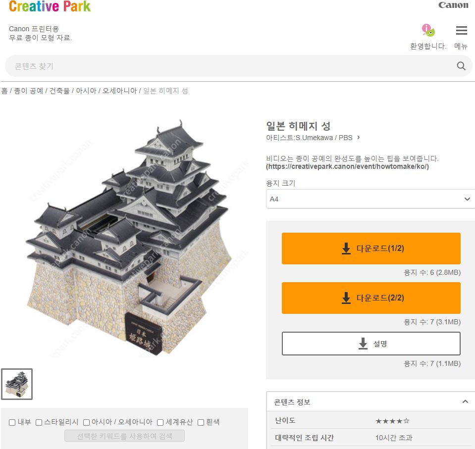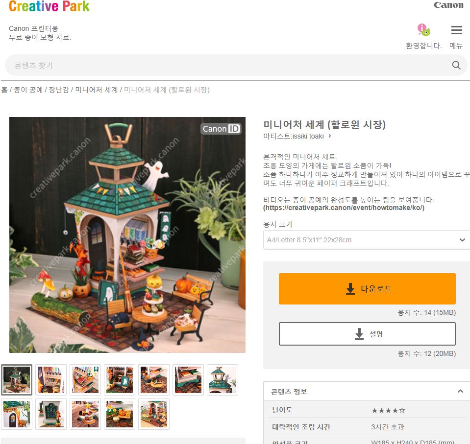 Canon Creative Park: 캐논 프린터를 사용한 종이공작(종이모형) 자료 사이트 본문
