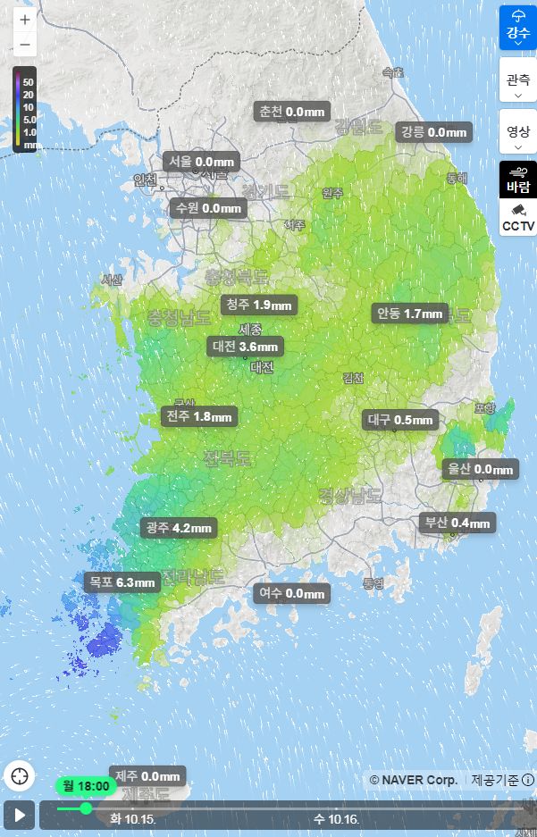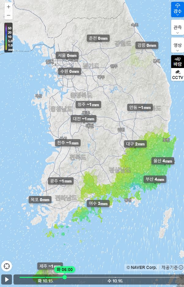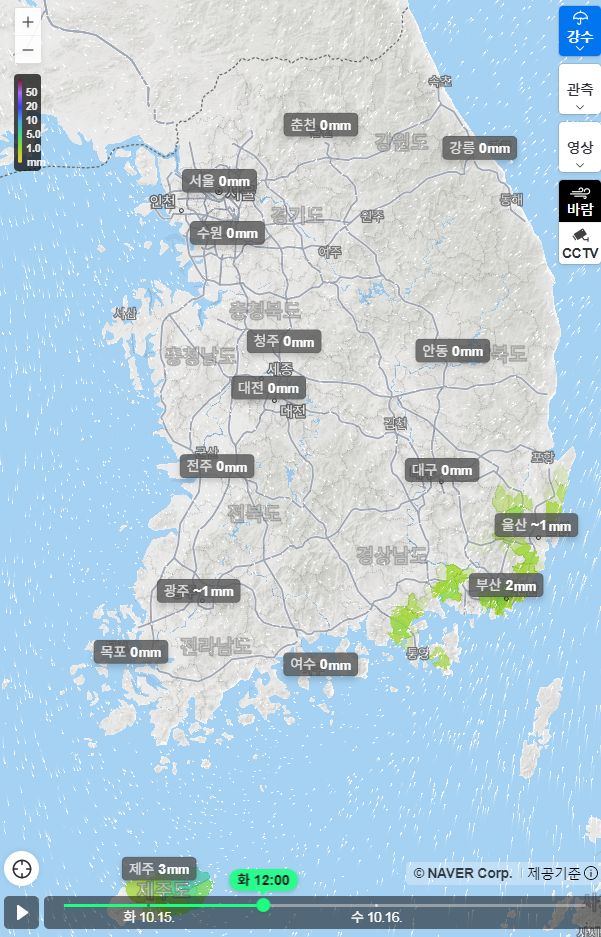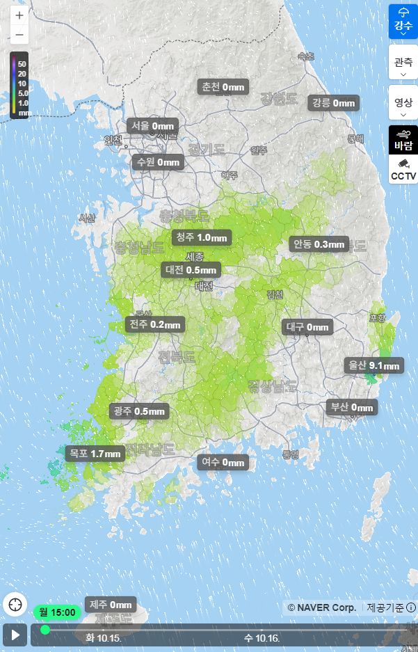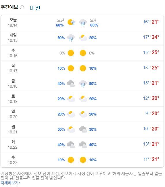날씨: 비오고 있습니다. 네이버 전국 비지도, 주간날씨 10.14.월~10.23.수 본문