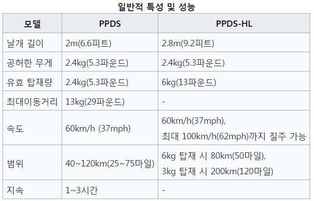 순항속력은 60km/h로 자동차 시내주행속력정도입니다. 즉, 매우 느리고 새와 혼동될 정도. 하지만 너무 작지는 않습니다.