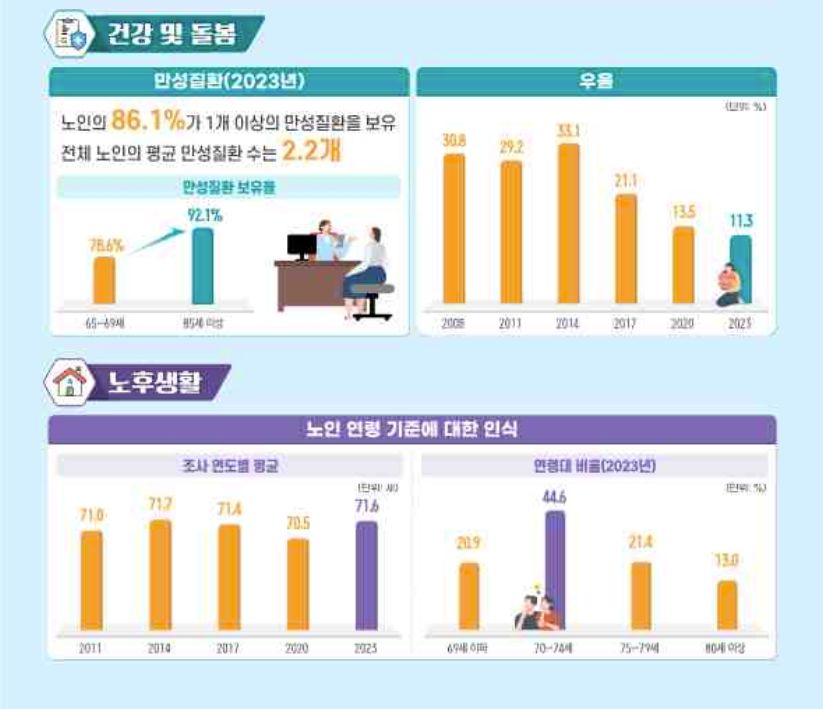 ㅡ 보건복지부, 2023년 노인실태조사 (노인실태조사는 ‘노인복지법’ 제5조에 근거해 2008년 이후 매 3년 주기로 실시)
