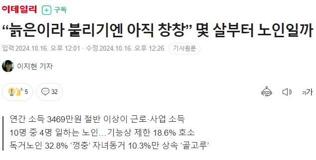 “늙은이라 불리기엔 아직 창창” 몇 살부터 노인일까