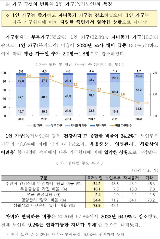 65세 이상 1000만시대, 보건복지부 2023년 노인실태조사 결과 (기사): 노인인구 통계, 설문조사결과 등 본문