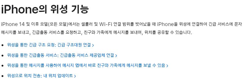 '위성을 통한 긴급 구조 요청' 기능이 실제로 내장된 것은 (......) 아이폰14부터다. 애플은 이 기능을 구현하기 위해 현재 지구상에 총 48개 위성을 띄운 미국 통신업체인 글로벌스타와 제휴하고 4억 5천만 달러(약 5천574억원)를 투자한다고 밝혔다. 아이폰14에 내장된 충돌감지 기능이 작동하면 위성으로 신호를 보내고 미국 각 지역에 있는 글로벌스타 인력에 현재 위치 등이 전달된다. 아이폰14 전라인업은 위성을 통한 긴급 구조 요청 기능이 처음으로 도입됐다.