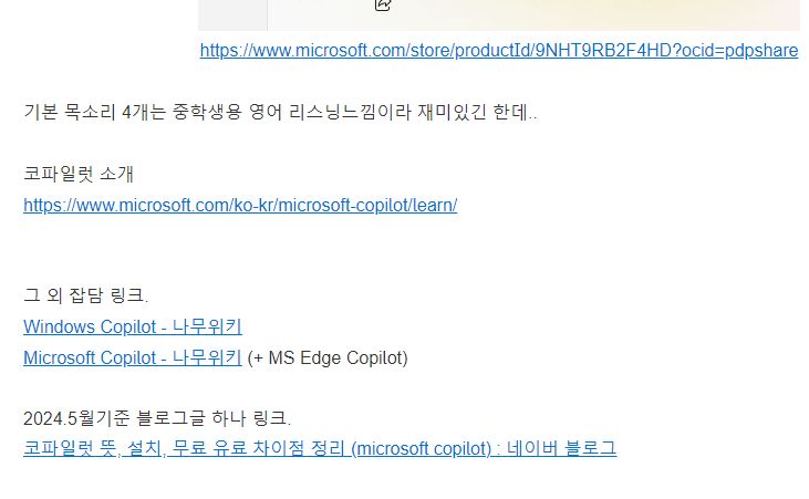 | 마이크로소프트 엣지(Edge) 웹브라우저에 코파일럿(AI; MS의 인공지능 챗봇)이 들어갔다는데.. (0) | 2024.12.28 |