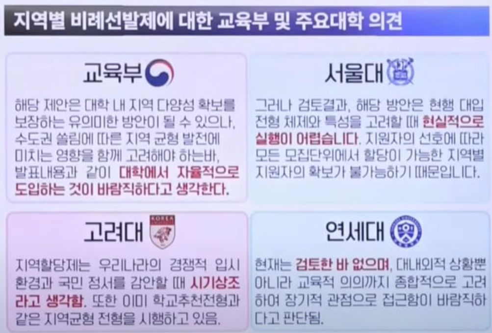 대학입시, '지역별 비례선발제를 거부하는 대학들'은 '놀고 먹으려 한다'는 일침 본문