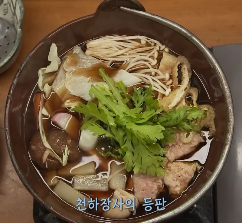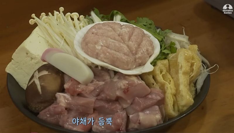 그리고 유부, 어묵, 두부, 채소(무, 쑥갓, 패랭이버섯, 대파, 표고버섯, 양배추, 양파 등) 등. 자세한 내용은 영상을 보세요.
