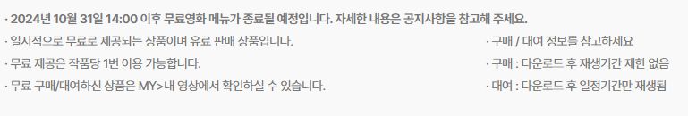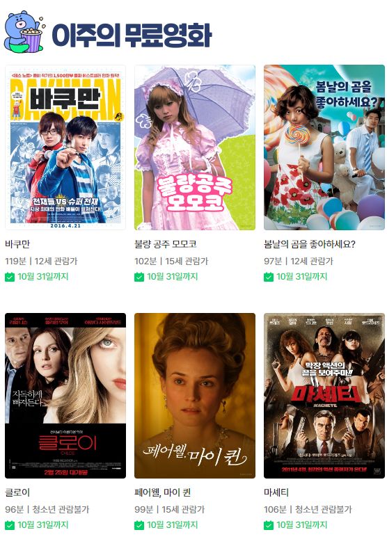 네이버 시리즈온 무료영화는 10월 31일 오후 2시까지만 서비스됩니다.