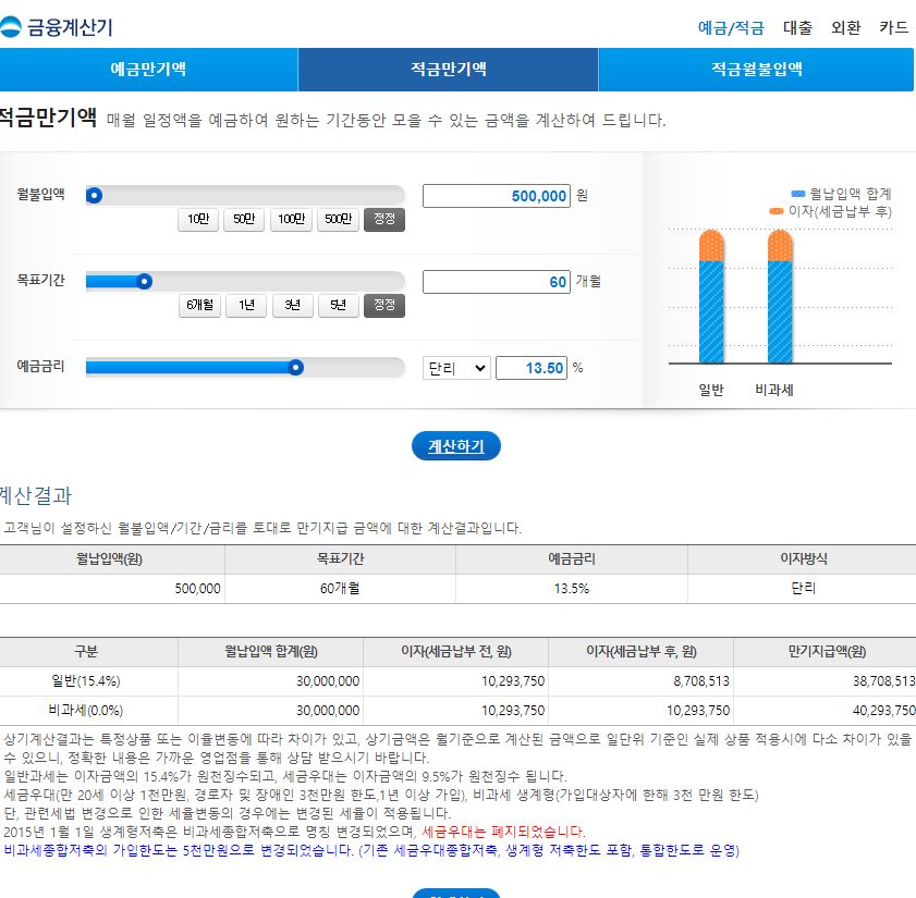 시중은행 적금 금리가 요즘 별로 안 높거든요. 5%라고 쳐도 이 정도.
