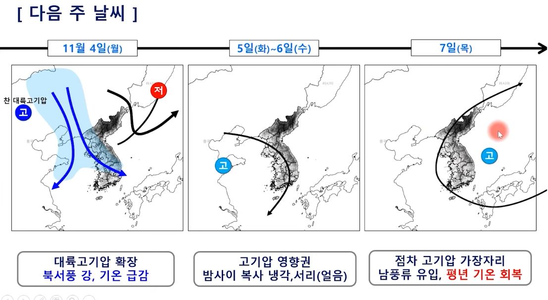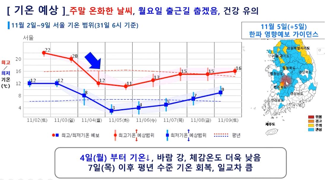 아래는 지난 10월 31일 목요일에 나온 주간 예보에서 인용한 것.