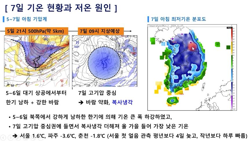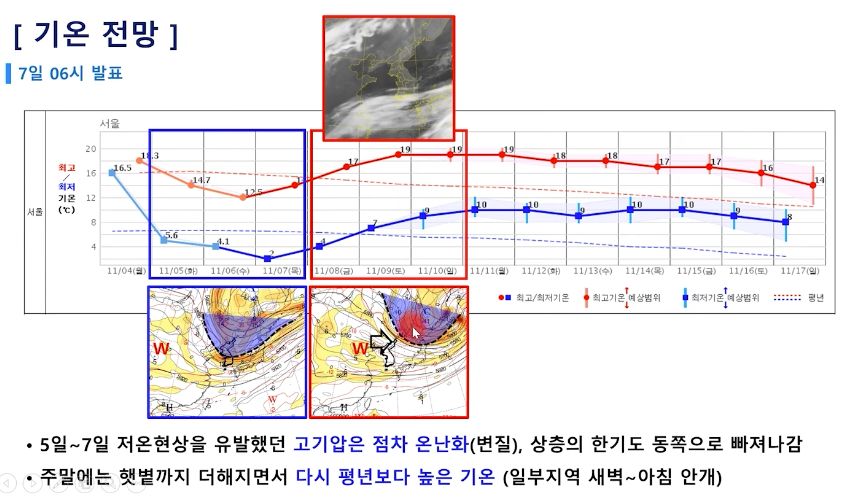 역시 입동! 서울 첫 얼음 관측! 그런데 다시 기온이 오릅니다. (11월 7일 기상청 예보브리핑)