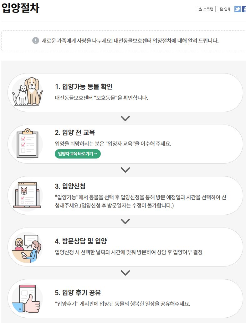 [충남일보 손지유 기자] 지난해 대전동물보호센터에 입소한 동물 중 32%만 입양을 통해 새로운 가족을 찾은 것으로 나타난 가운데 반려동물을 입양해서 키우는 견주 등은 분양보다 입양을 적극