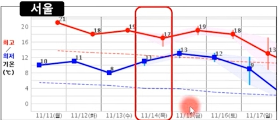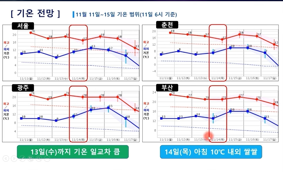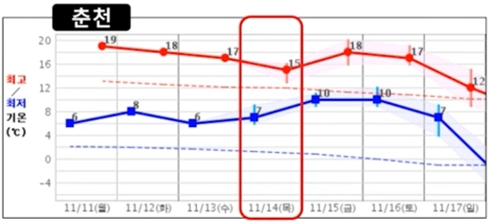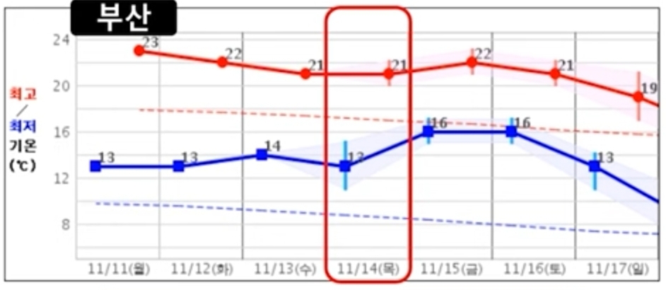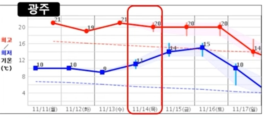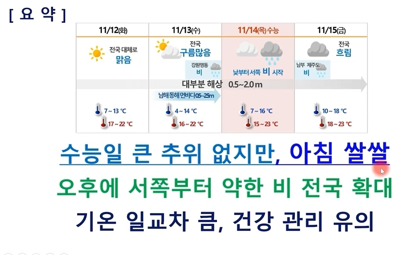 주간 날씨: 2024.11.14일 목요일 수능일까지는 한파없음. 다음주부터 추워질듯 본문