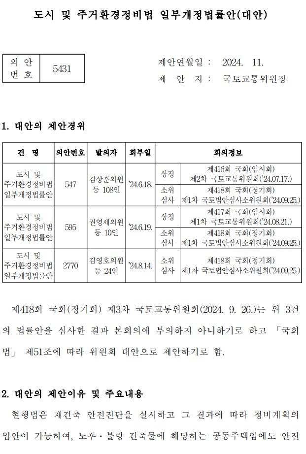 ㅡ 도시 및 주거환경정비법(도시정비법) 개정안